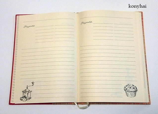 Keménykötésű szakácskönyv A/5 vagy B/5 méretben.