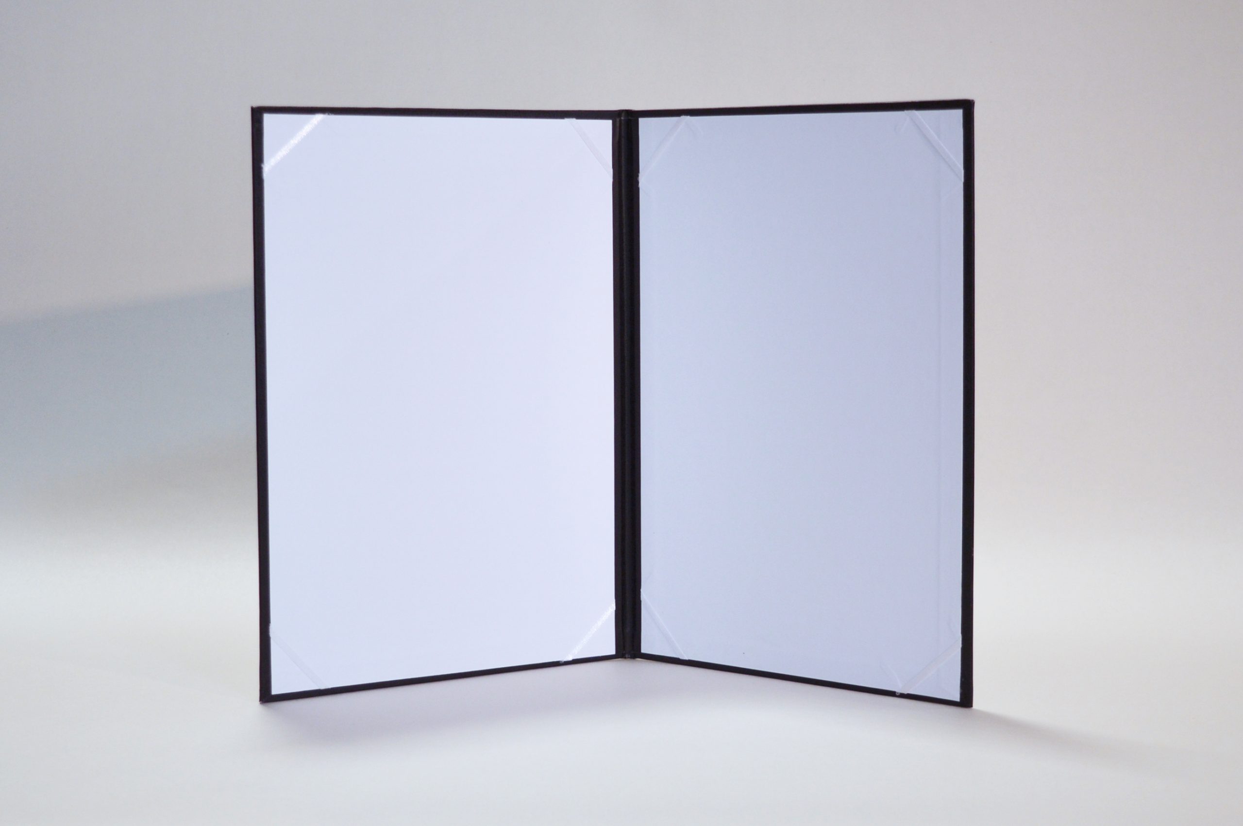 A/4 méretű oklevéltartó fekete színű kötészeti műbőr anyagból. Elején arany színű oklevél felirattal. Belső kialakítás: fehér színű kreatív papír, választha...