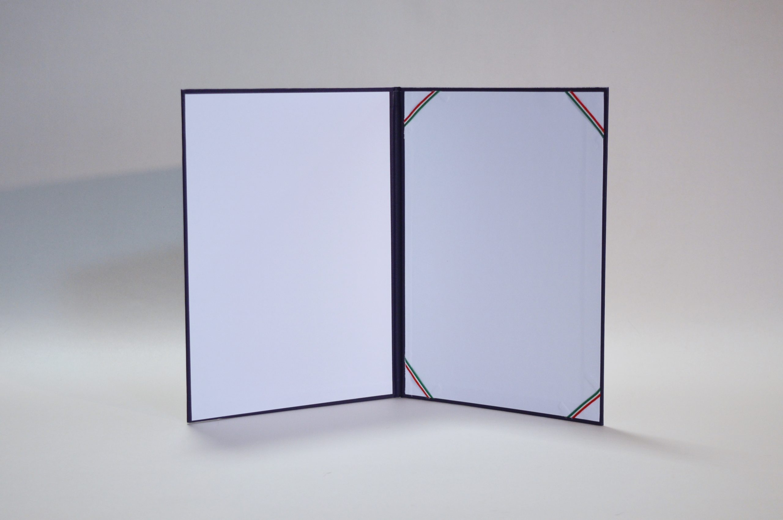 A/4 méretű oklevéltartó fekete színű kötészeti műbőr anyagból. Elején arany színű oklevél felirattal. Belső kialakítás: fehér színű kreatív papír, választható szalaggal! 4 szalaogos szatén szalag 4 szalagos nemzeti szalag 8 szalagos szatén szalag 8 szalagos nemzeti szalag